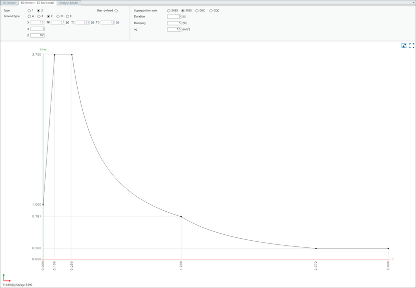 The calculated amplitudes related to the individual natural modes are superimposed using different methods described in literature. The program offers the ABS-method, the SRSS method, and the Complete Quadratic Combination (CQC).