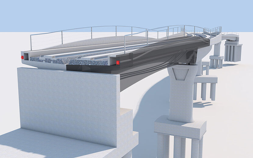 Integrating road data used for road/bridge alignment is easily achieved via ALLPLAN’s open BIM platform ALLPLAN Bimplus. The bridge engineer must only take over the road data and can immediately start with the bridge design. To assist the engineer even further, the bridge model can easily be transferred to analysis software (such as Bentley RM Bridge) for structural calculations. Once the design is completed, the parametric model can be transferred in ALLPLAN Engineering for completion of pre-stressing and reinforcement drawings.