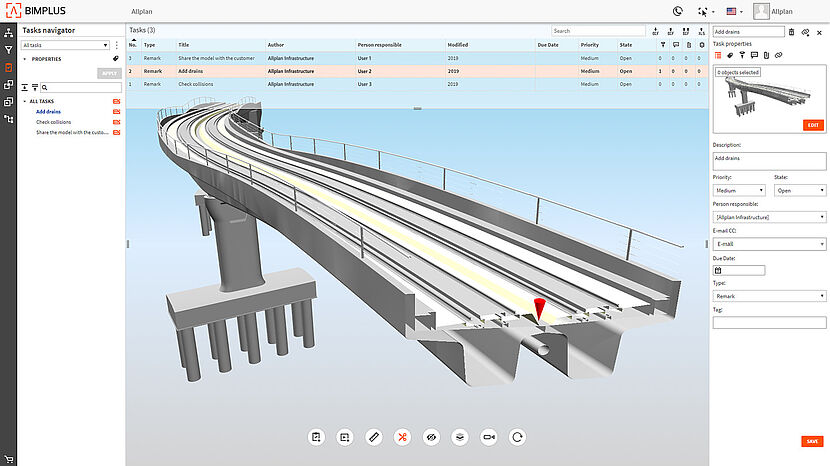 With the combination of ALLPLAN and the cloud-based BIM platform ALLPLAN Bimplus, everyone involved has access to the latest design, anytime, anywhere and with any device. BIM coordination happens interactively on the digital bridge model. Discrepancies are detected at an early stage and resolved jointly. This is an important contribution to ensuring that the construction project is completed on time and within budget.
