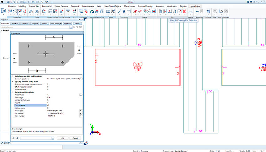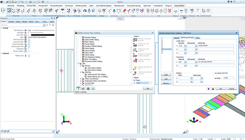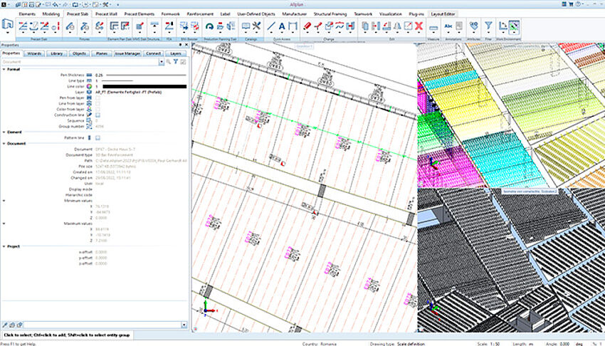 [...read more]ALLPLAN Precast Slabs automatically places the composite recesses and offers maximum flexibility for jointed systems. For filigree slabs, the software performs a shear force and bond check and installs any necessary lattice girders, if required.