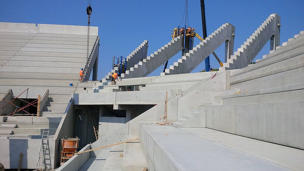 In industrialized construction, parts of the structure are assembled from prefabricated components according to the modular principle. This shortens and simplifies design and construction processes. Other advantages include increased work safety on the construction site, as components no longer have to be made directly on site, as well as the promotion of sustainability by avoiding material waste due to efficient industrial prefabrication.