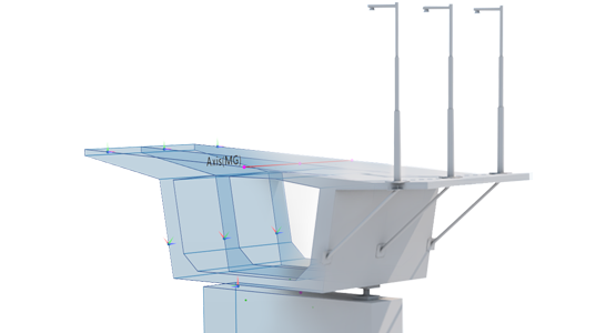 Allplan Bridge now offers the option of placing intelligent objects (e.g. street lights, elastomeric bearings, bored piles, ...) at defined positions with correct alignment and predefined parameters. When the bridge model is transferred to Allplan, parametric objects (so-called PythonParts) with the predefined properties are automatically placed at the corresponding positions. This significantly speeds up the generation of a detailed bridge model, including reinforcement if necessary. In addition, changes can be made particularly easily due to the parametric nature of these objects.