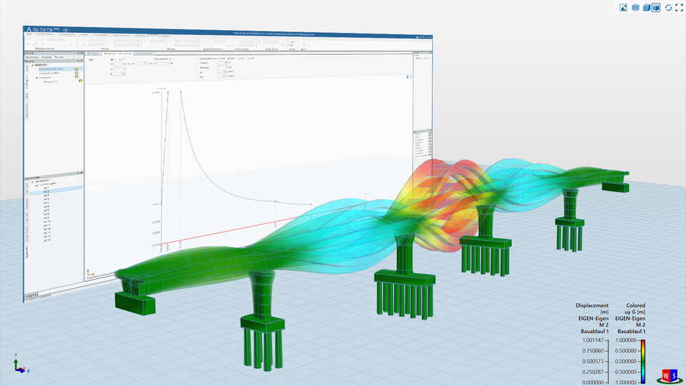 Allplan Bridge 2021 uses the multi-mode Response Spectrum Method for evaluating the effects of seismic loading. The solution consists of two separate tasks in the calculation procedure, firstly the determination of the relevant natural modes of the structural system and secondly the evaluation of the response spectrum prescribed in the design code.