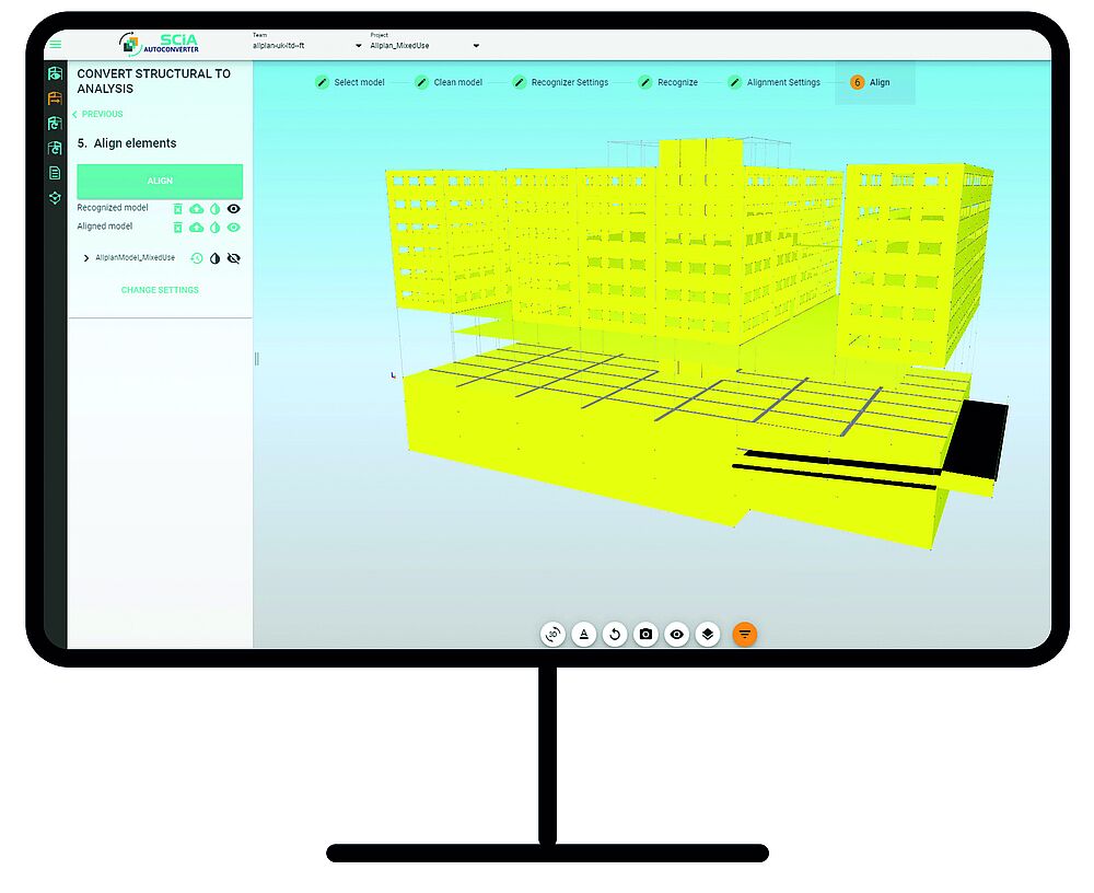 Another exciting initiative brings the all-new SCIA AutoConverter technology to Allplan. With this innovation, supported engineering clients, will be given the capability to integrate Allplan models quickly and efficiently to their structural analysis tool of choice, including sister brands SCIA, Frilo and Risa and further structural analysis tools in the sense of open BIM. A benefit of this workflow is that it produces a structural analysis model exactly the way a structural engineer wants to see it, without the modeler requiring comprehensive structural skills and without compromising the geometrical model. This is achieved by using the Microsoft Excel file format Structural Analysis Format (SAF).