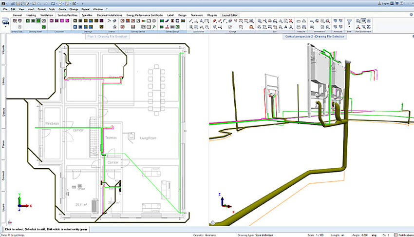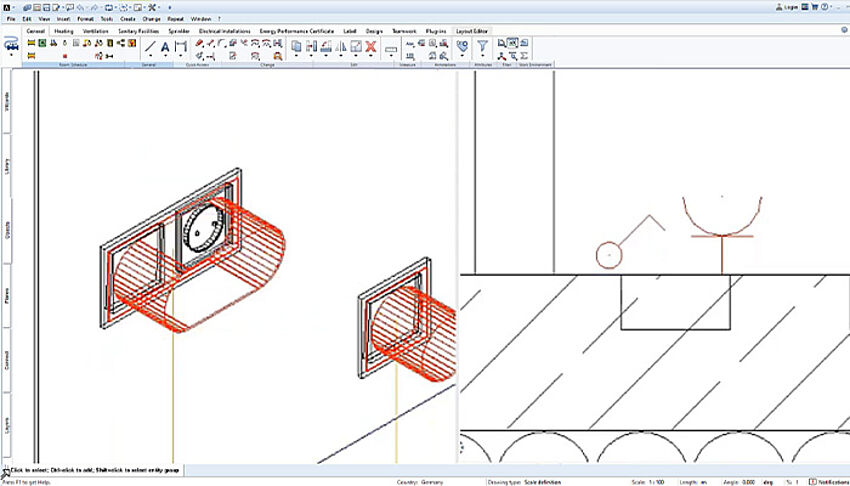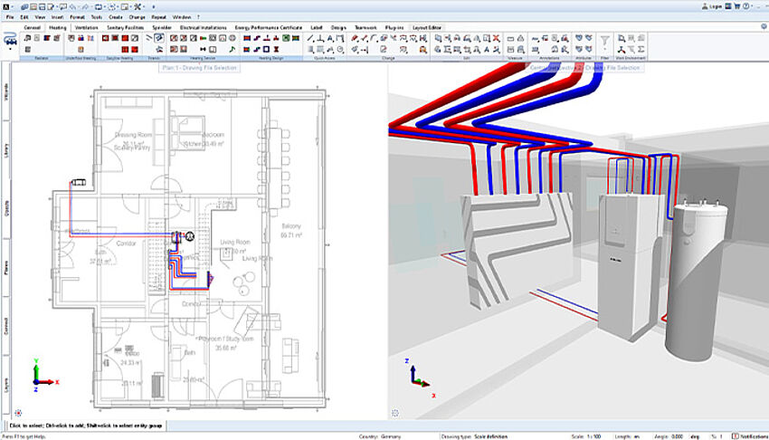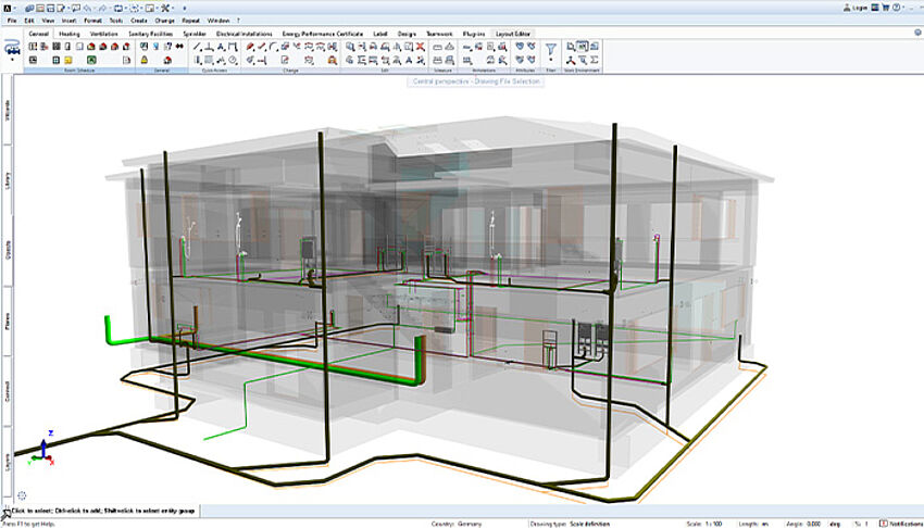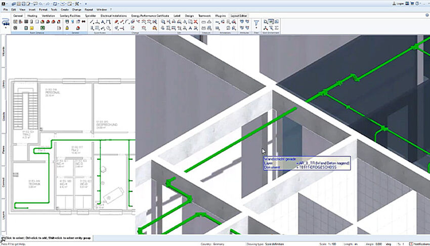 [...read more]The heating module of AX3000 is one of the most modern and comprehensive solutions for heating planning. With the combination of ALLPLAN and the heating module you can create even complex heating systems quickly, error-free and with little work. This is because the software takes a lot of work off your hands thanks to integrated material databases, numerous automation functions as well as interactive drawing functions.