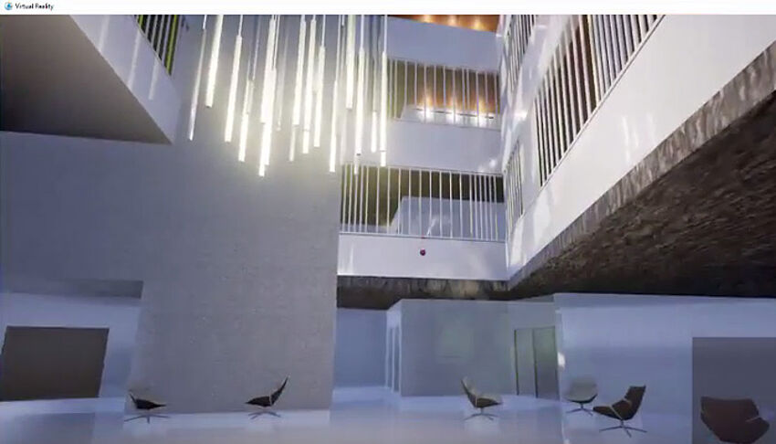 [...read more]The AX3000 Virtual Reality add-on allows architects, engineers, contractors and others involved in the construction process to view a building realistically even before the groundbreaking ceremony. The prerequisite for this is a digital building model in the open BIM platform BIMPLUS by ALLPLAN and ideally HTC VIVE® VR goggles. Once the VR model has been generated, the building model can be immediately explored virtually without further preparation of the data. The building can even be visualized including an environmental scenario. A simulation of the course of the sun is possible, as is an adjustment of the textures. Movement in the building is done either via the keyboard or via an optional gamepad. This also applies to all other functions.