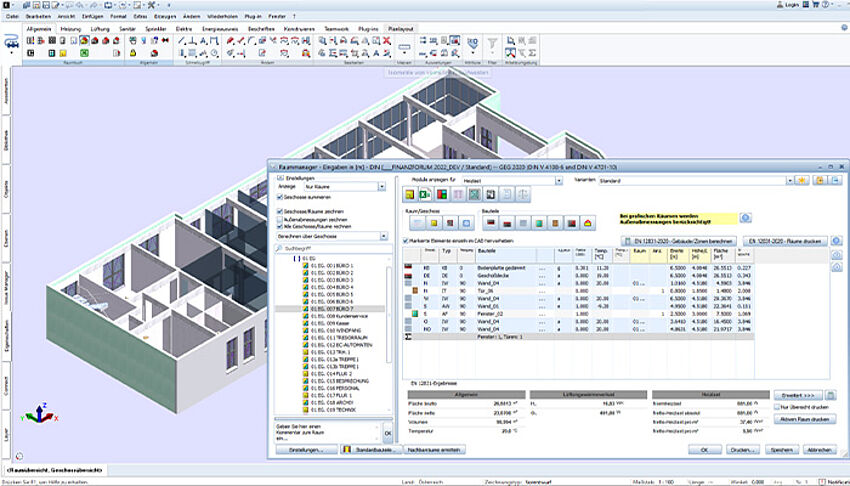 After the heating design has been carried out in the ALLPLAN building model (see Heating Design step), the calculation of the heating load is carried out with the AX3000 Room Book.