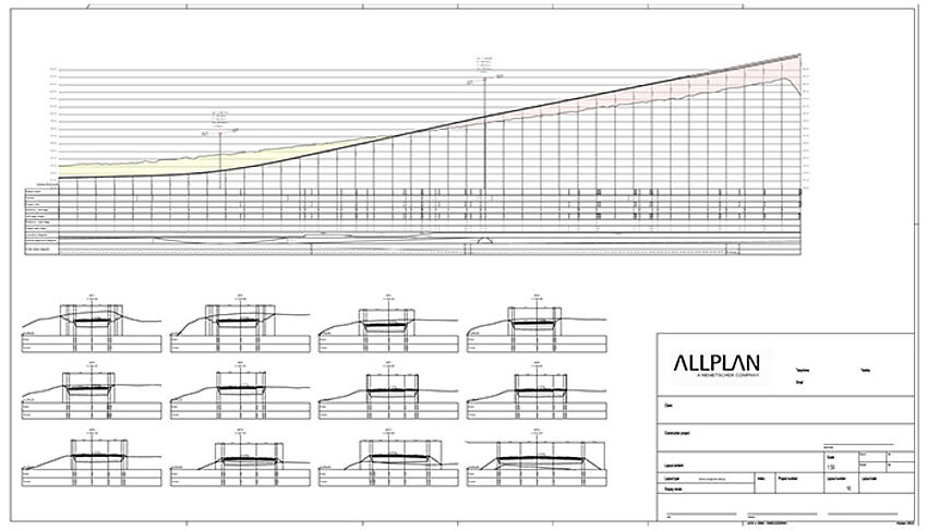 [...read more]In ALLPLAN it is easy to extrude freely defined profiles along a line element. This allows, for example, railroad tracks, road dividers, guard rails, support elements, etc. to be placed relative to the axis and consequently also taken into account in the output plans.