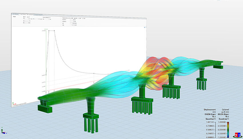 ALLPLAN CIVIL uses the multi-mode Response Spectrum Method for evaluating the effects of seismic loading. The solution consists of 2 separate tasks in the calculation procedure, firstly the determination of the relevant natural modes of the structural system and secondly the evaluation of the response spectrum prescribed in the design code.