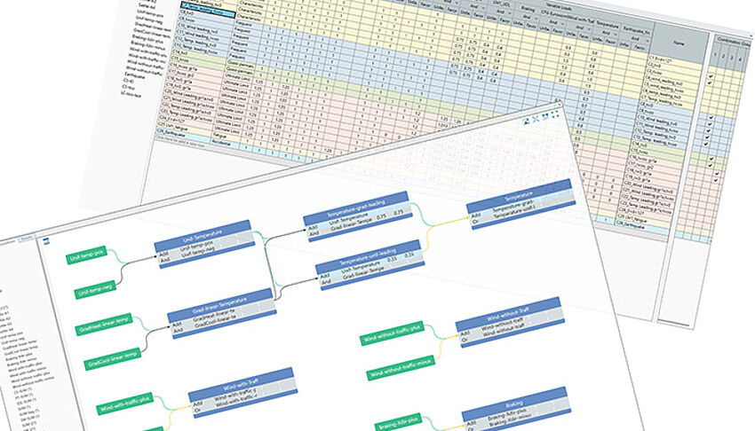 [...read more]The user-friendliness and usability of the superposition in ALLPLAN CIVIL is groundbreaking. The schematic definition combines maximum flexibility and optimal overview. The same is true also for the definition of combinations. The table form gives the user an overview not only of the defined load factors but also of different types of combinations. The combination type becomes an important attribute when the code-based design is performed. This allows specific design procedures for automatically using the corresponding combinations.