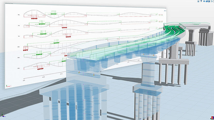 The moving load calculation in ALLPLAN Bridge allows for calculating the most unfavorable effects due to traffic. It is based on the theory of (related) influence lines allowing an easy and fast calculation.