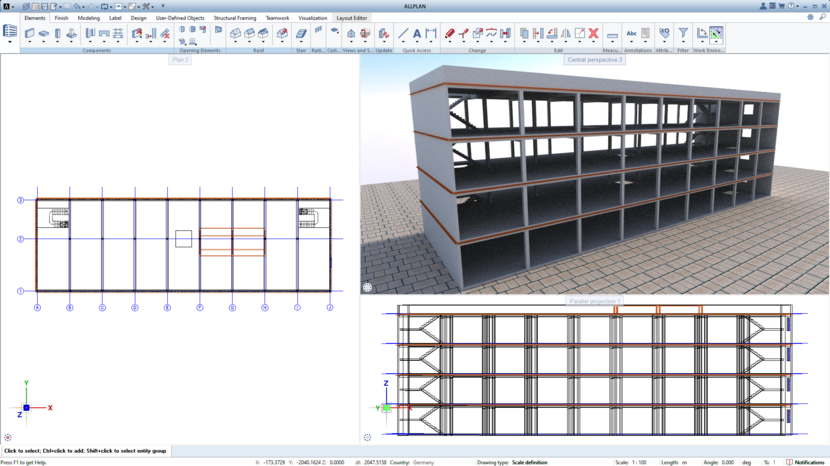 Benefit from a seamless solution – from design to structural analysis and detailing with ALLPLAN, SCIA, and the AutoConverter.